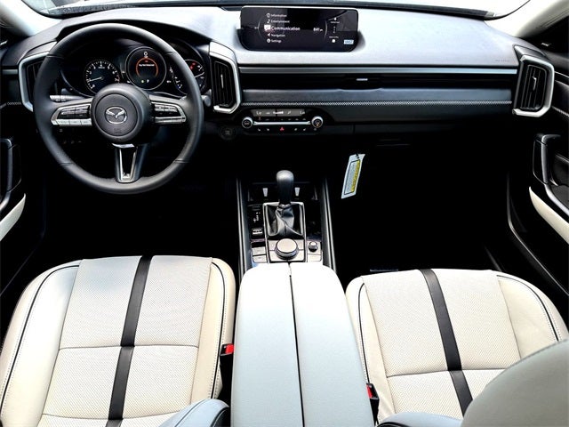 This 2026 Mazda CX-50 2.5 S Premium in polymetal gray metallic comes with the following features: SKYACTIV®-G 2.5L 4-Cylinder DOHC 16V 6-Speed Automatic AWD 12 Speakers, 4-Wheel Disc Brakes, ABS brakes, Air Conditioning, Alloy wheels, AM/FM radio: SiriusXM, AppLink/Apple CarPlay and Android Auto, Auto High-beam Headlights, Auto-dimming Rear-View mirror, Automatic temperature control, Brake assist, Bumpers: body-color, Carpet Cargo Mat, Delay-off headlights, Driver door bin, Driver vanity mirror, Dual front impact airbags, Dual front side impact airbags, Electronic Stability Control, Emergency communication system: MAZDA CONNECT, Exterior Parking Camera Rear, Front anti-roll bar, Front Bucket Seats, Front Center Armrest, Front dual zone A/C, Front reading lights, Front wheel independent suspension, Fully automatic headlights, Heated and Ventilated Front Seats with 3 Level Adjustment, Heated door mirrors, Heated front seats, Illuminated entry, Knee airbag, Leather Seat Trim, Leather Shift Knob, Leather steering wheel, Low tire pressure warning, Memory seat, Occupant sensing airbag, Outside temperature display, Overhead airbag, Overhead console, Panic alarm, Passenger door bin, Passenger vanity mirror, Polymetal Gray Metallic and White Interior, Power door mirrors, Power driver seat, Power Liftgate, Power moonroof, Power passenger seat, Power steering, Power windows, Radio data system, Radio: AM/FM/HD Bose 12-Speaker Audio Sound System, Rain sensing wipers, Rear seat center armrest, Rear window defroster, Rear window wiper, Remote keyless entry, Silver Cross Bars, Speed control, Speed-sensing steering, Split folding rear seat, Spoiler, Steering wheel mounted audio controls, Tachometer, Telescoping steering wheel, Tilt steering wheel, Traction control, Trip computer, Turn signal indicator mirrors, Variably intermittent wipers, Ventilated front seats, and Wheels: 20 x 8J Aluminum Alloy Black Metallic with Machining Cut.
